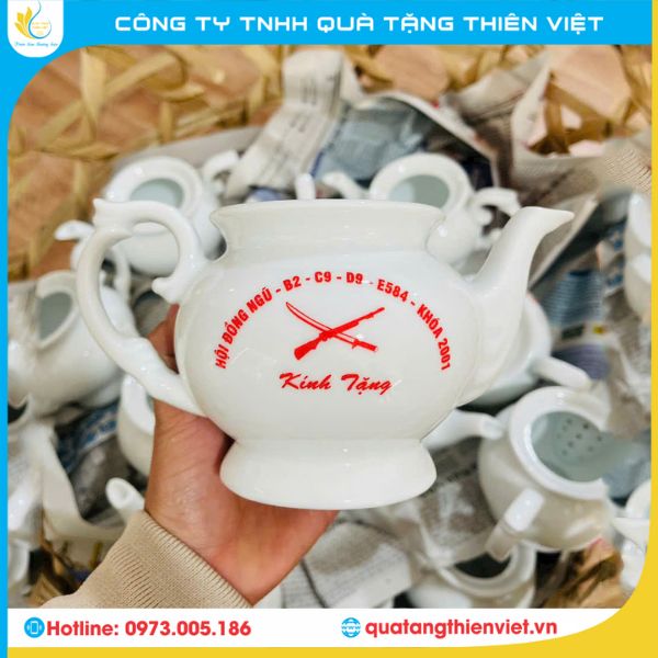 Đặt ấm chén in logo tại Quà Tặng Thiên Việt, bạn hoàn toàn yên tâm về chất lượng. Với quy trình sản xuất chuyên nghiệp, chúng tôi đảm bảo mang đến sản phẩm ấm chén in logo chất lượng cao, đẹp mắt và bền bỉ trong thời gian dài sử dụng.