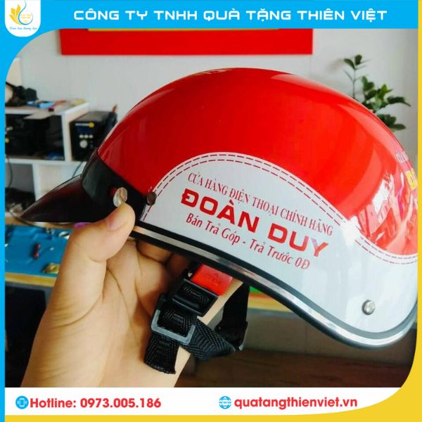 Hãy liên hệ ngay với Xưởng Quà Tặng Thiên Việt để nhận báo giá và tư vấn chi tiết về các dịch vụ in mũ bảo hiểm Thái Bình của chúng tôi. Chúng tôi luôn sẵn sàng phục vụ khách hàng với chất lượng và dịch vụ tốt nhất.