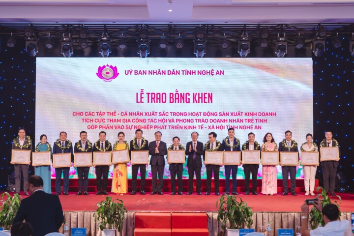 Tại buổi lễ, anh Chu Hữu Vóc vinh dự là 1 trong 15 cá nhân được UBND tỉnh Nghệ An tặng Bằng khen “Đã có thành tích xuất sắc trong quá trình xây dựng và phát triển Hội Doanh nhân trẻ tỉnh, góp phần vào sự nghiệp phát triển kinh tế – xã hội tỉnh Nghệ An”.